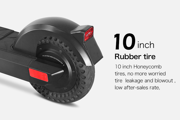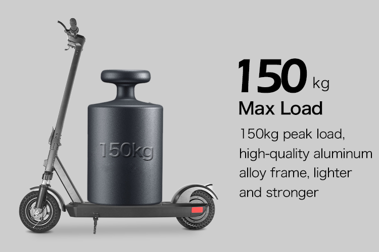• Sturdy & Comfortable Ride: 10-inch solid tires ensure a comfortable and stable ride on various terrains, while the lightweight aircraft-grade aluminum frame supports up to 120KG.