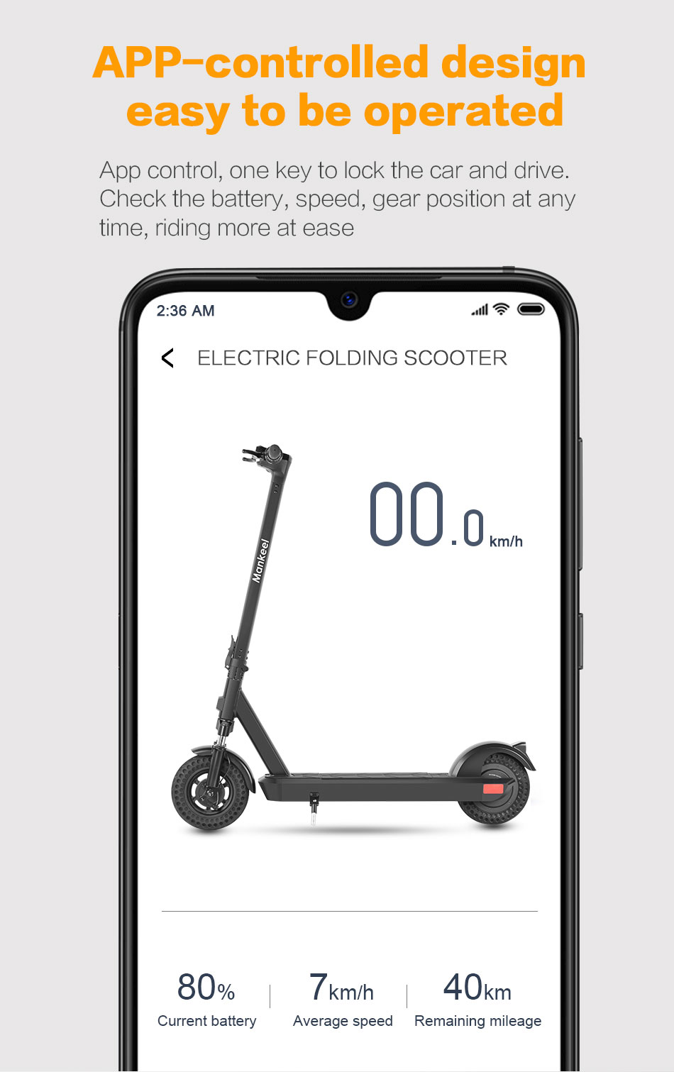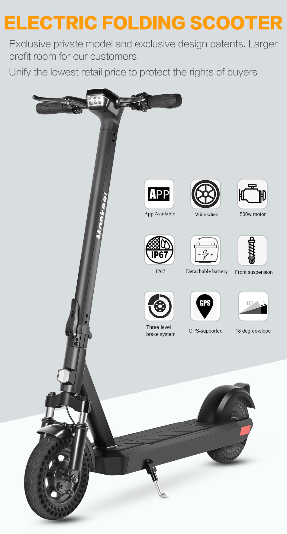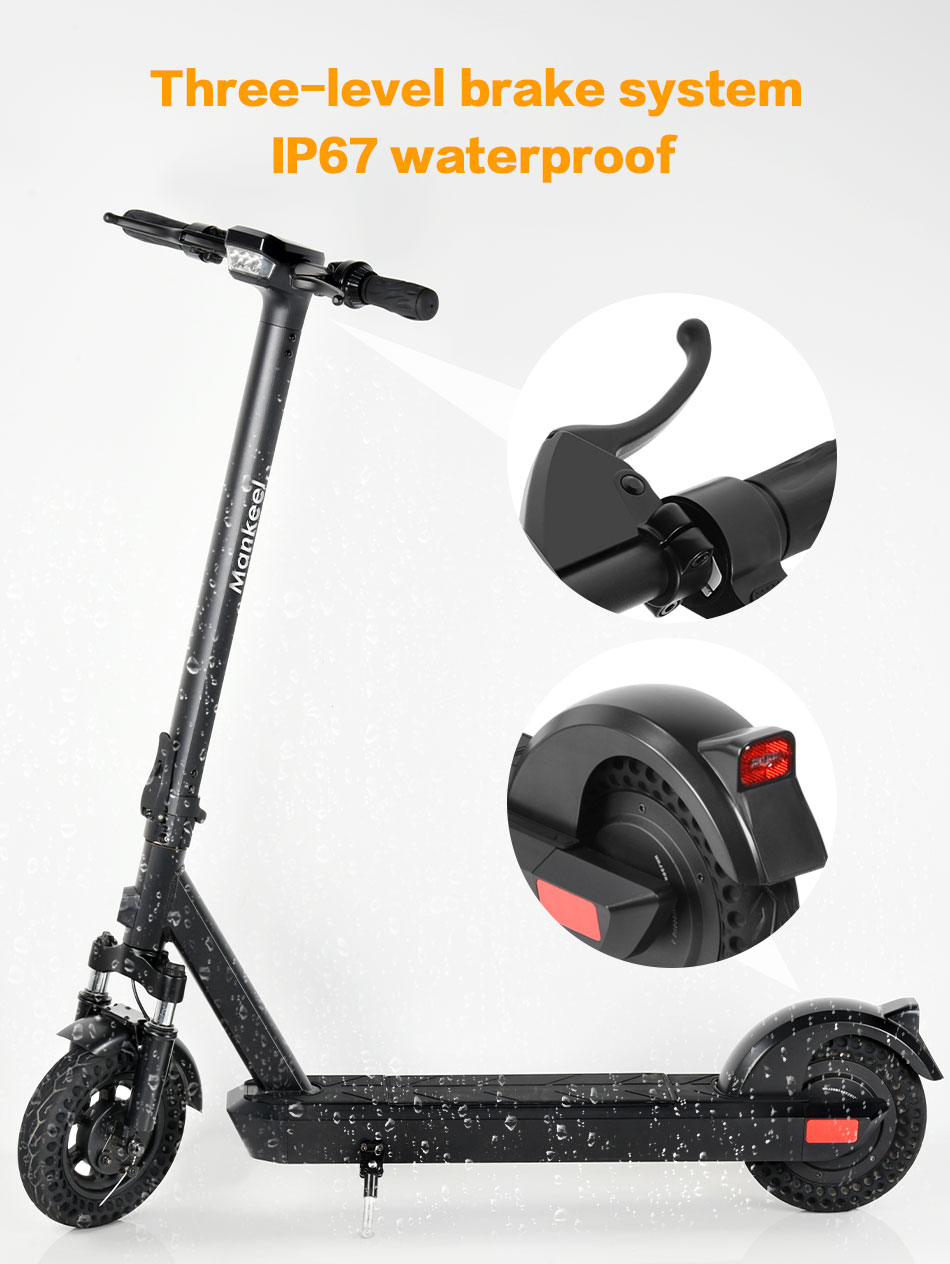 Designed with safety and durability in mind, the scooter features an IP55 waterproof rating for the entire body and an IP68 waterproof rating for the battery control unit, ensuring it performs reliably even in rainy or wet conditions. Whether you're using it for commuting, running errands, or just having fun, the Mankeel electric scooter is built to take you places with confidence and ease.